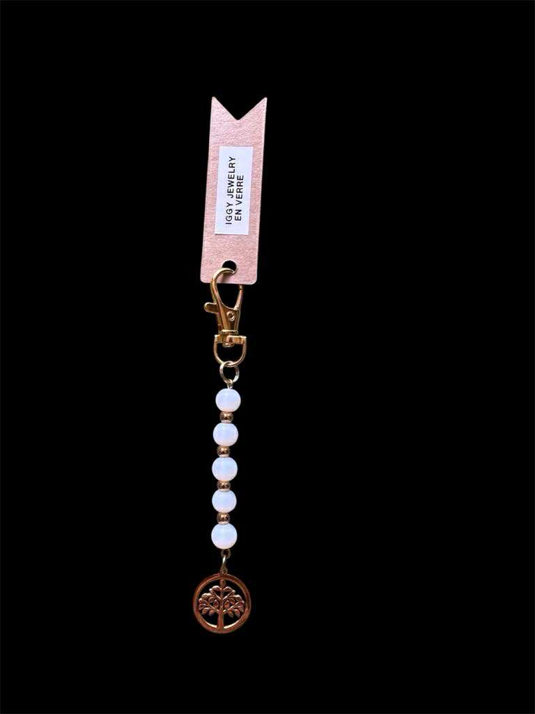 L’arbre de vie doré évoque l’harmonie, la sagesse et la connexion entre les mondes. Les perles de verre blanc opaque ajoutent une touche de pureté et de lumière, pour un bijou sobre, élégant et spirituellement apaisant.