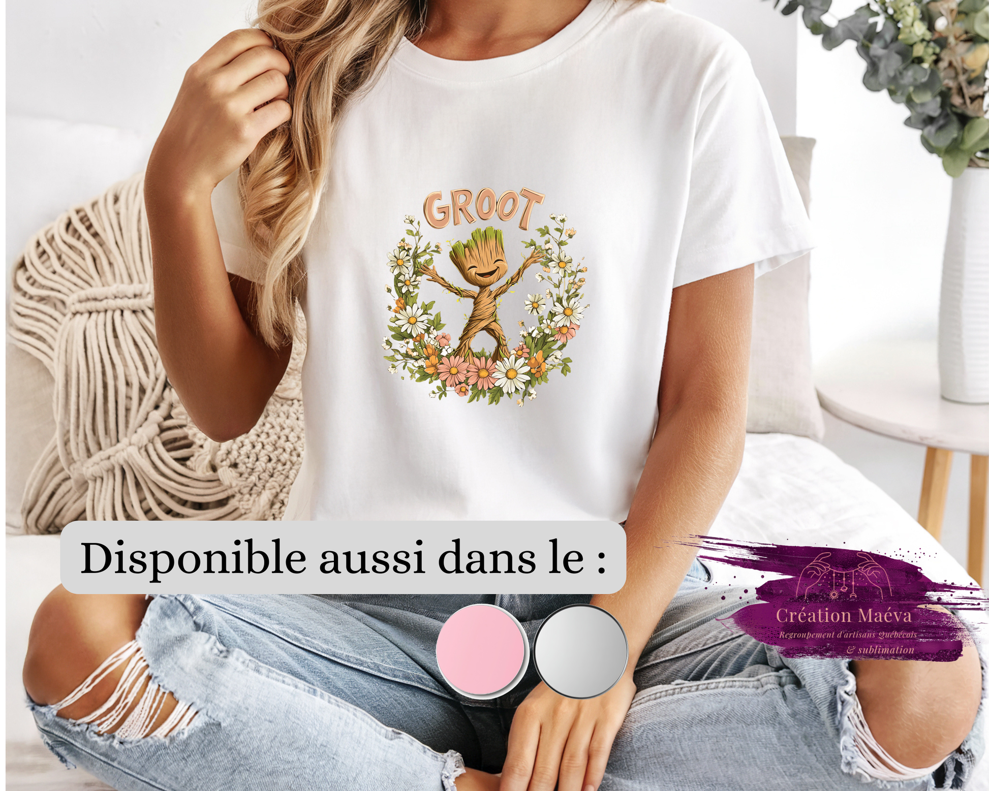 Veuillez noter que les couleurs d’impression peuvent varier très légèrement selon la couleur du chandail choisi.La sublimation offre un rendu beaucoup plus éclatant sur les chandails blancs. Sur les chandails de couleur (gris ou rose), les teintes peuvent apparaître légèrement plus douces ou moins vives.Ces variations sont normales et font partie du procédé de sublimation.