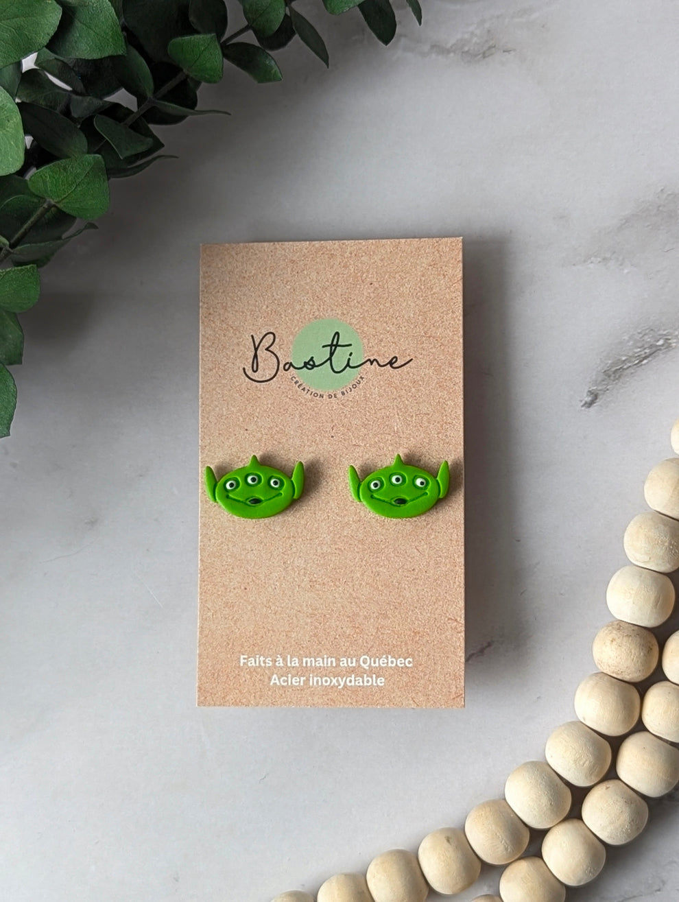 Extra-terrestres - Boucles d'oreilles studs argile polymère et acier inoxydable hypoallergène