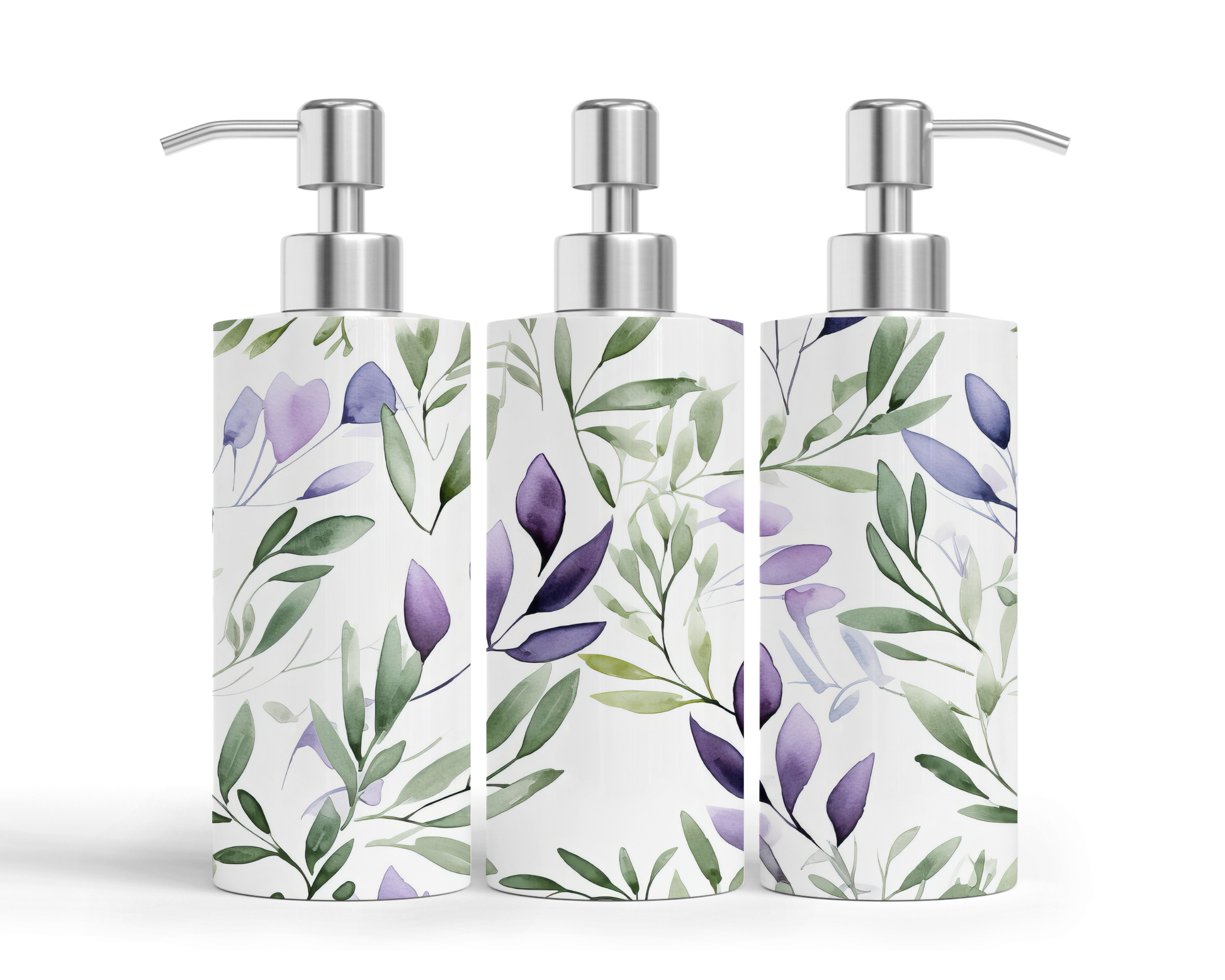 Pompe à savon - Feuilles verts et mauves